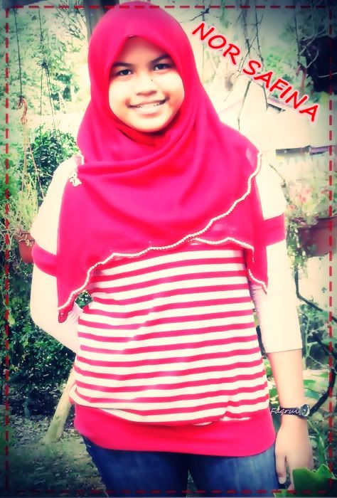 Name: Nor Safinah Bte Nan Known as: Safina | Ina | Pinat Age: 15 years oldStates: JohorianCountry: MalaysiaFav. Colours: Soft Pink and PurpleLanguage: Malay and EnglishHobby: blogging, facebooking, Sleeping, Eating Fav Quotes: Pakaian yang kotor boleh dicuci, Tapi hati yang suci sukar dicari. Haha ♥